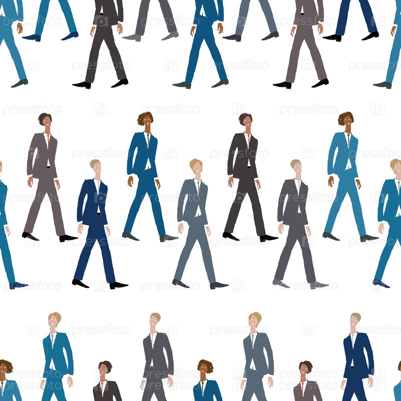 Бесшовный рисунок эскизов шагающих молодых людей в классических костюмах