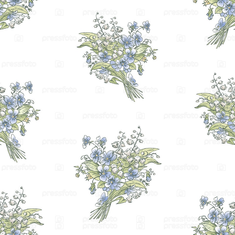 Бесшовный рисунок весенних букетов ландышей и фиалок