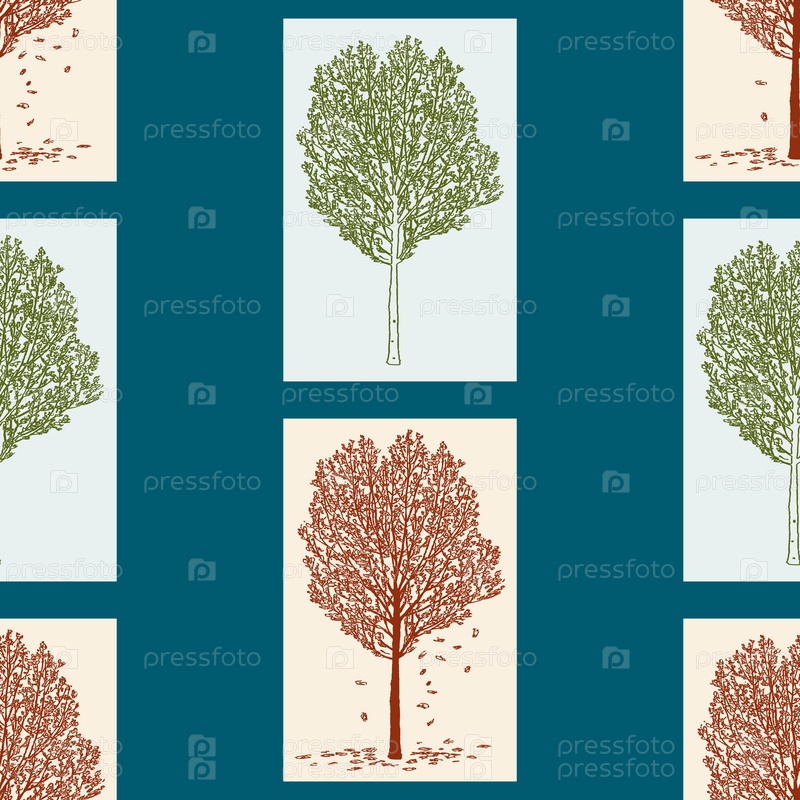 Бесшовный рисунок лиственных деревьев весной и осенью