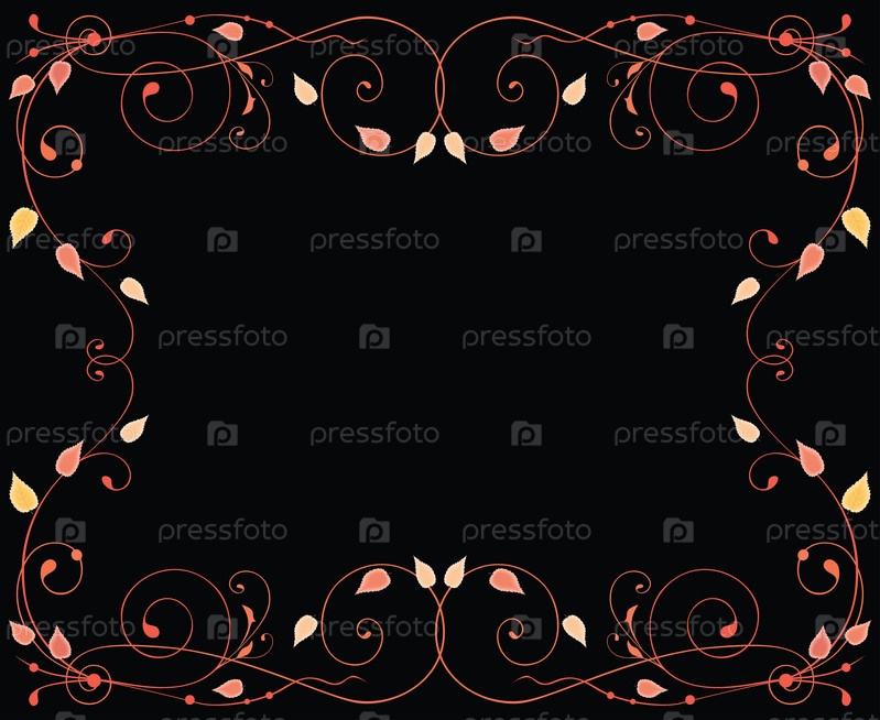 Декоративная векторная рамка с цветочными завитками и осенними листьями