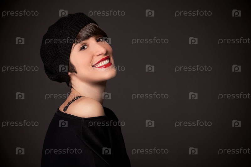 Улыбающаяся девушка во французском стиле и место для текста
