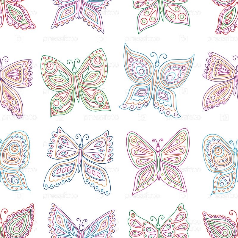 Узор очертаний разноцветных бабочек