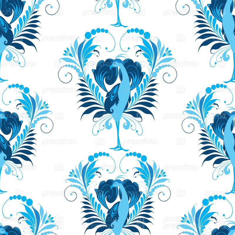 Бесшовный рисунок синих стилизованных птиц