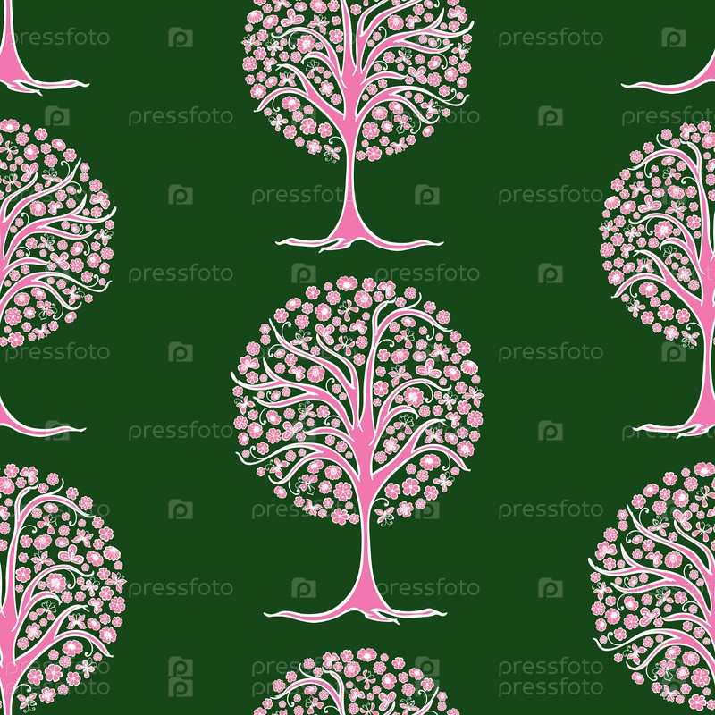 Бесшовный рисунок декоративного цветущего дерева