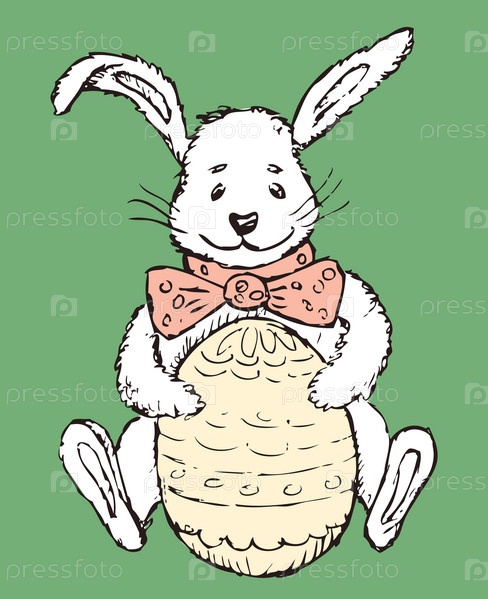 Векторное изображение мультяшного пасхального кролика с пасхальным яйцом