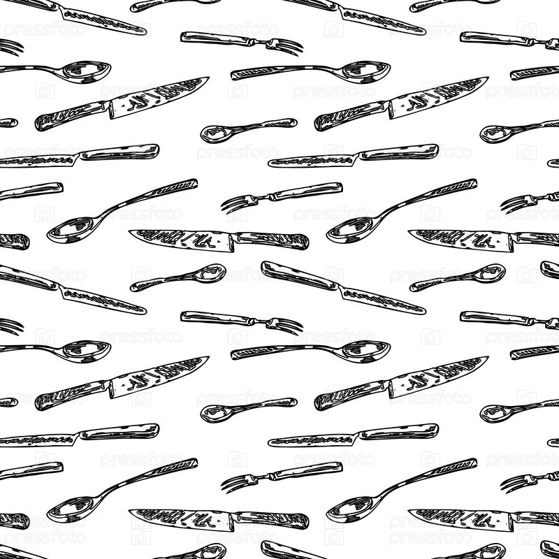 Бесшовный узор из нарисованных столовых приборов