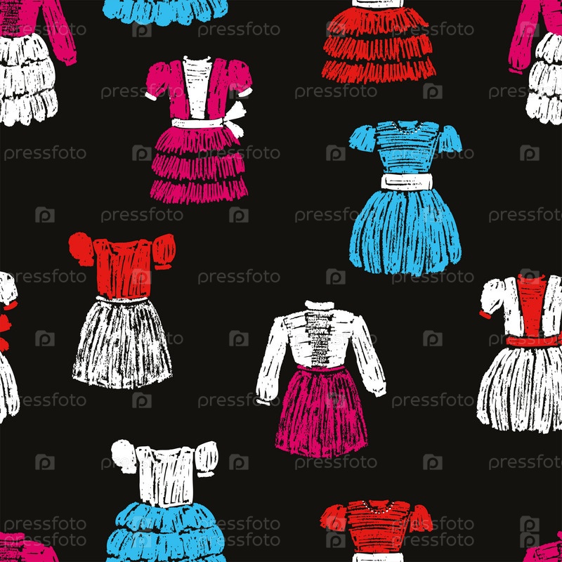 Бесшовный рисунок нарисованных платьев для детей