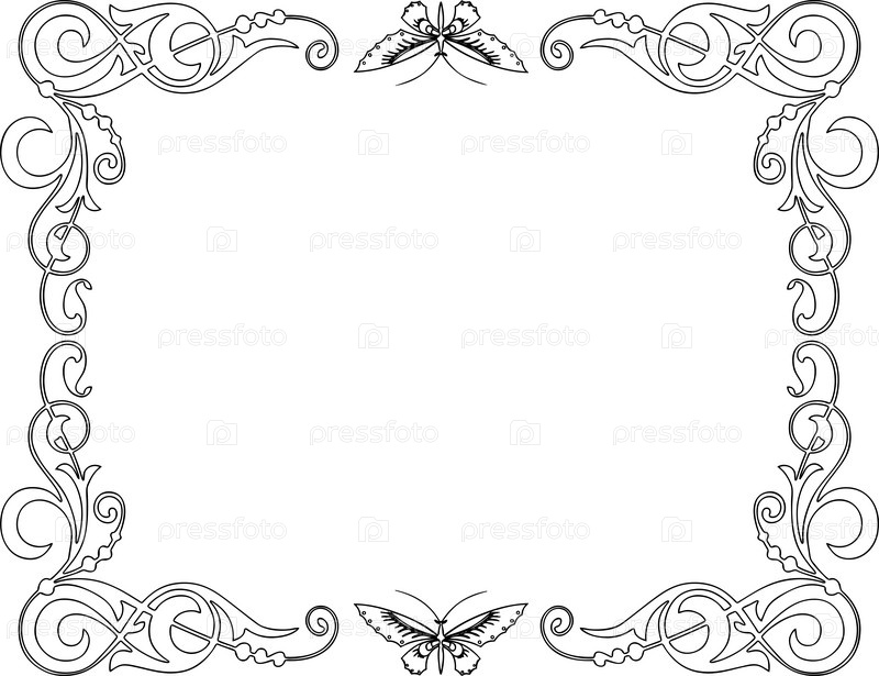 Векторная декоративная рамка из усиков и бабочек