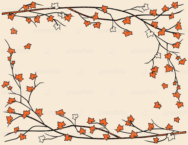 Векторная карта с декоративной цветочной рамкой из кленовых ветвей с осенними листьями