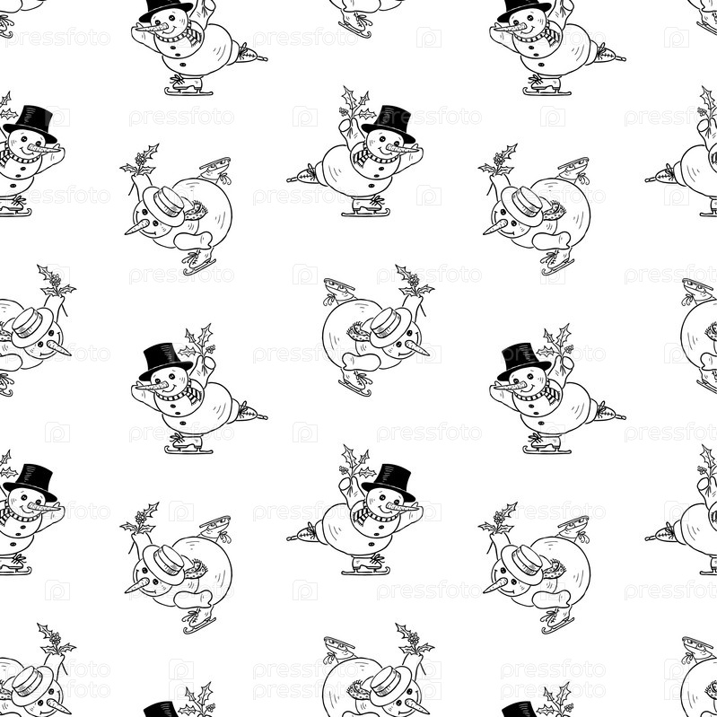 Рождественский фон из снеговиков, катающихся на коньках