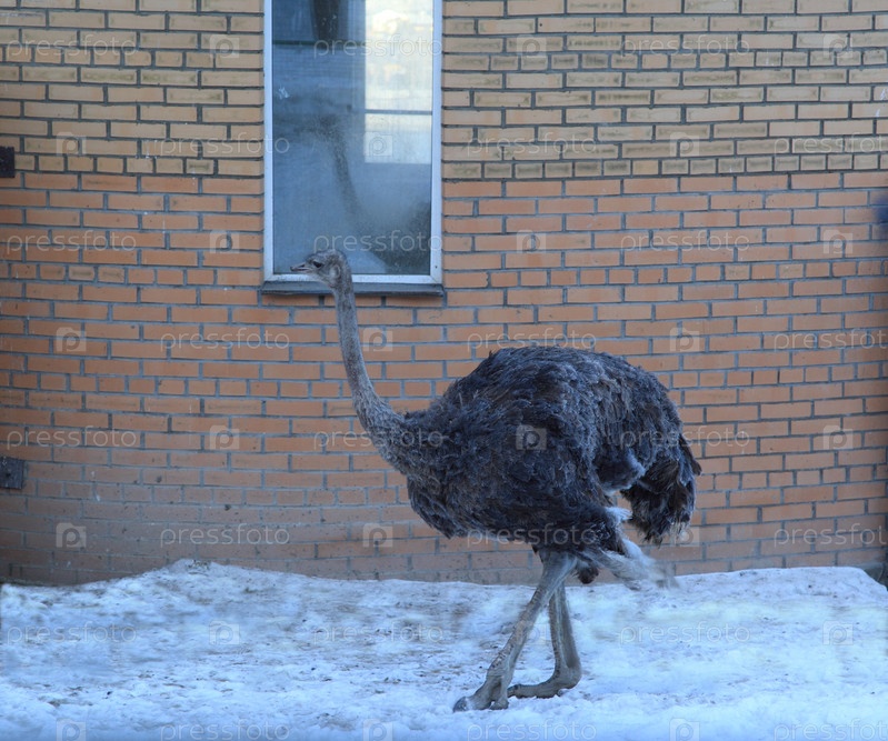Страус на снегу