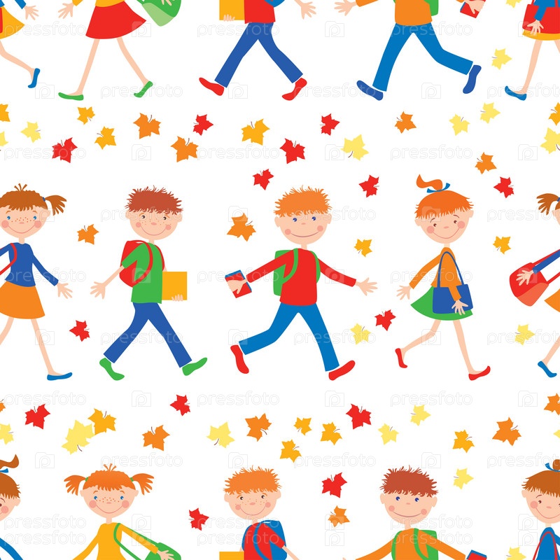 Бесшовный фон веселых школьников, идущих в школу