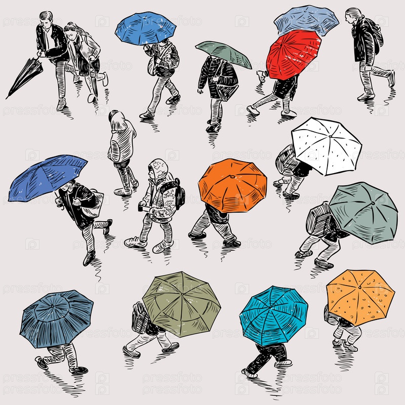 Городские пешеходы в дождливую погоду