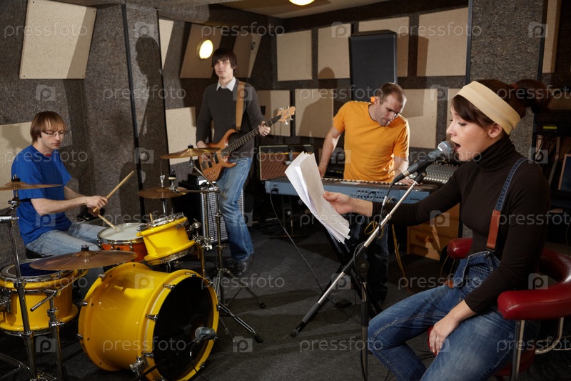 Рок-группа за работой в студии