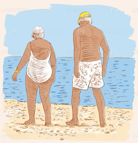 Пожилые супруги на пляже