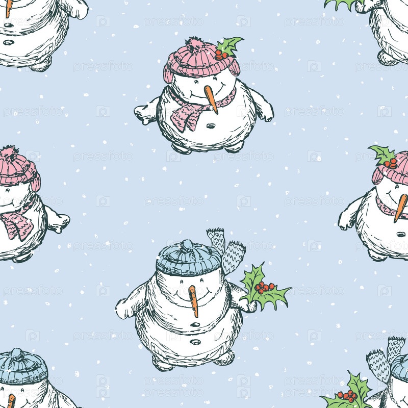 Бесшовный фон веселых снеговиков в Рождество