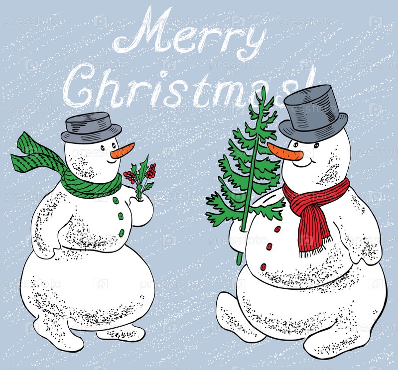 Векторная открытка с парой веселых рождественских снеговиков