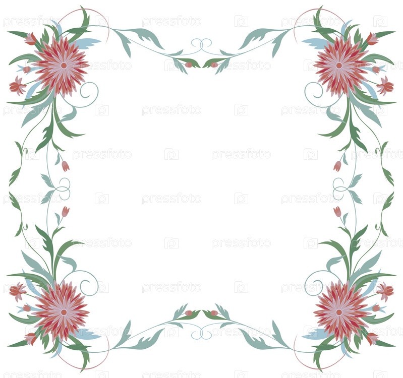 Векторная открытка с цветочной рамкой из декоративных астр с бутонами и усиками