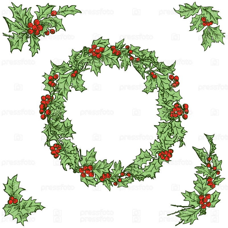 Векторная иллюстрация рождественского венка из ветвей падуба с ягодами