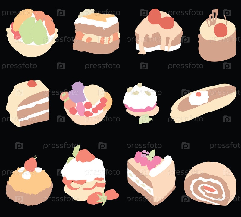 Векторное изображение набора различных сладких пирожных