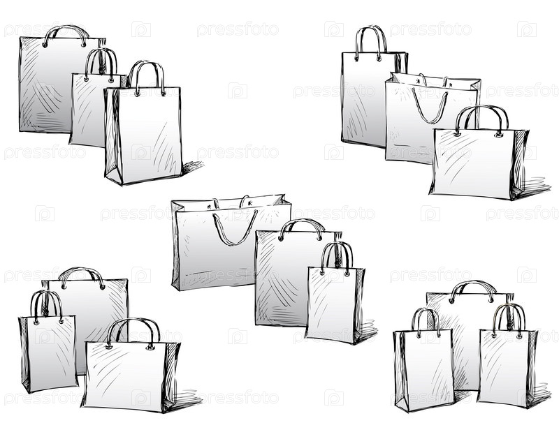 Векторное изображение эскизов различных бумажных пакетов для покупок