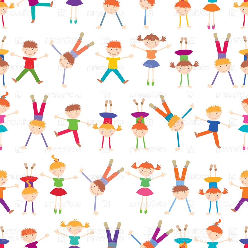 Бесшовный рисунок игривых веселых мультяшных детей