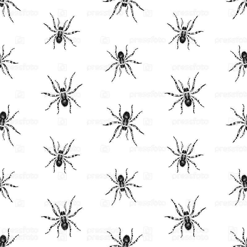 Бесшовный рисунок нарисованных ядовитых пауков