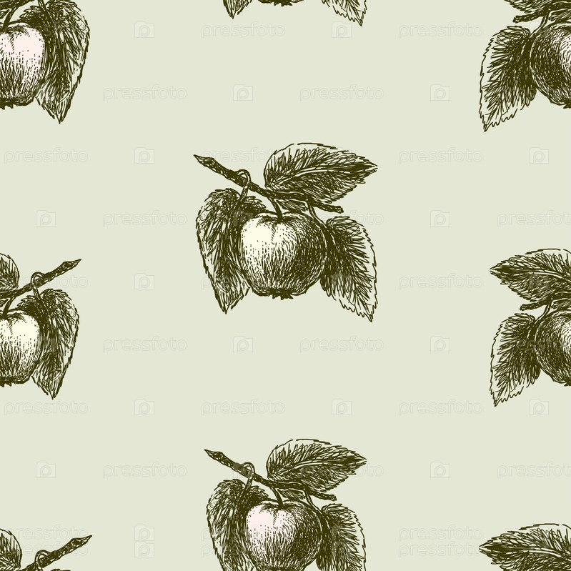Узор из эскизов яблок на ветках