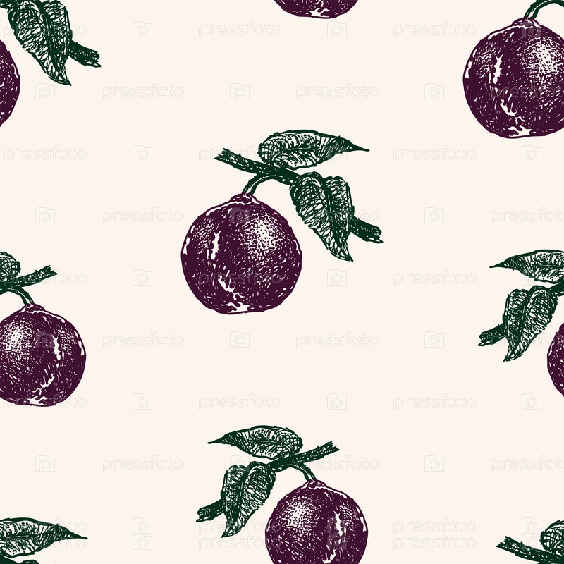 Узор эскизов спелых слив на ветвях