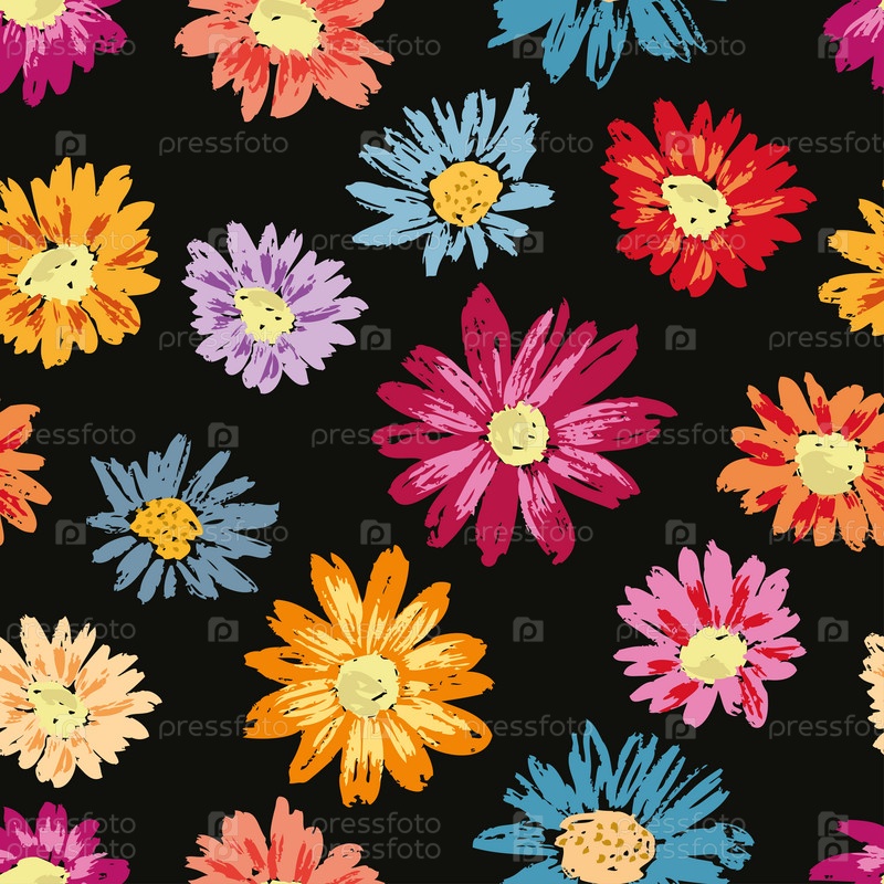 Бесшовный фон из красочных нарисованных ромашек