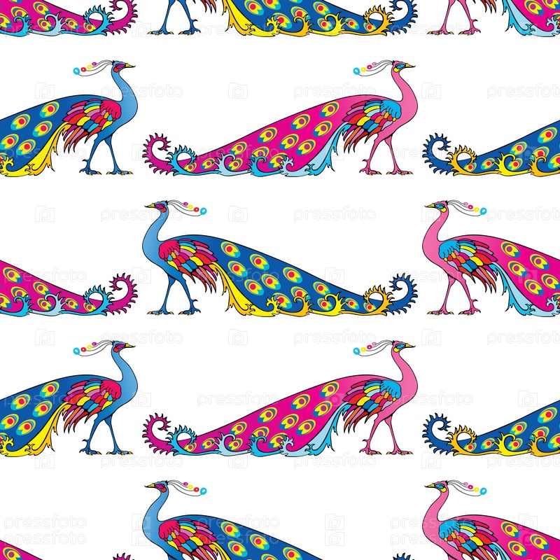Бесшовный фон из синих и розовых декоративных павлинов