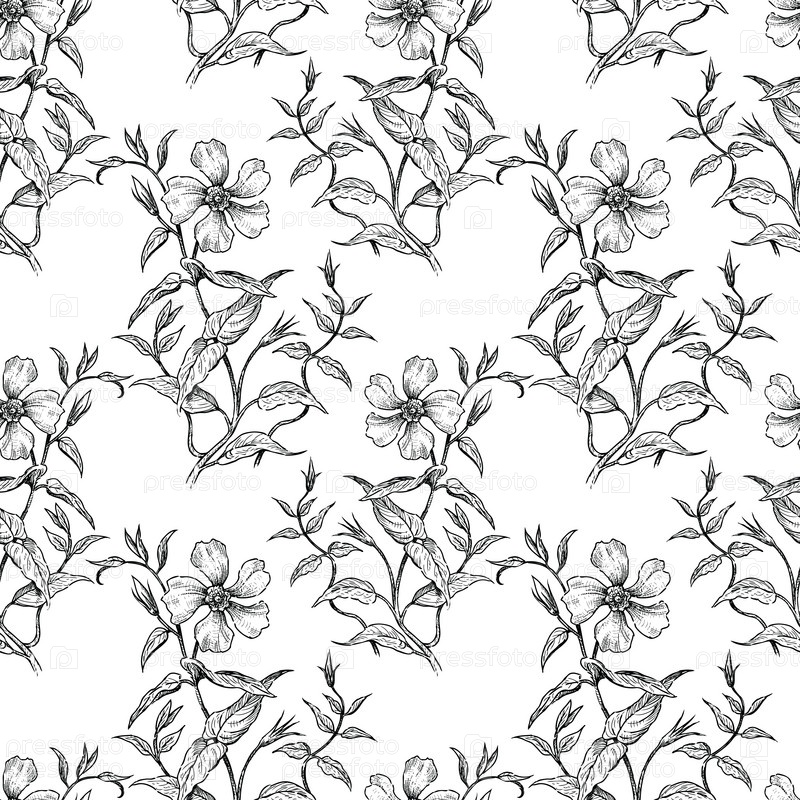 Бесшовный узор из нарисованных диких роз