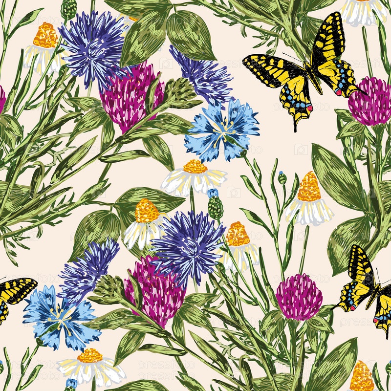 Бесшовный рисунок нарисованных полевых цветов