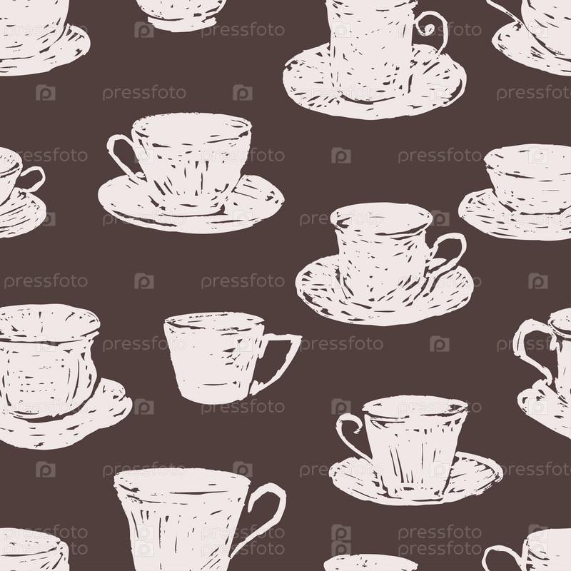 Бесшовный рисунок силуэтов, нарисованных кофейными чашками