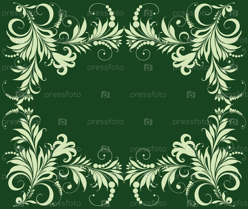 Векторная зеленая открытка с декоративной цветочной рамкой