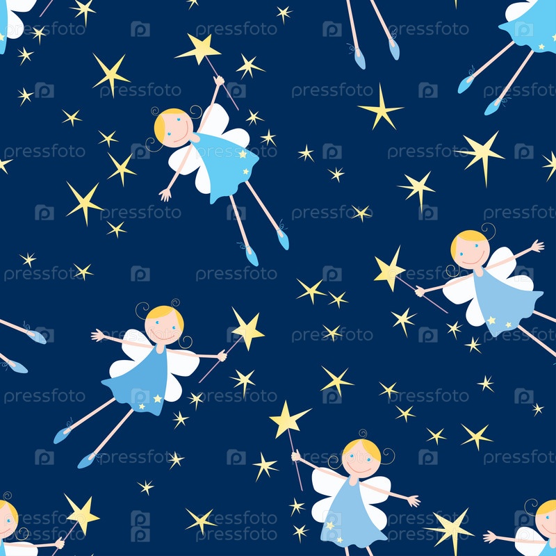 Маленькие ночные феи летают по звездному небу. Бесшовный фон