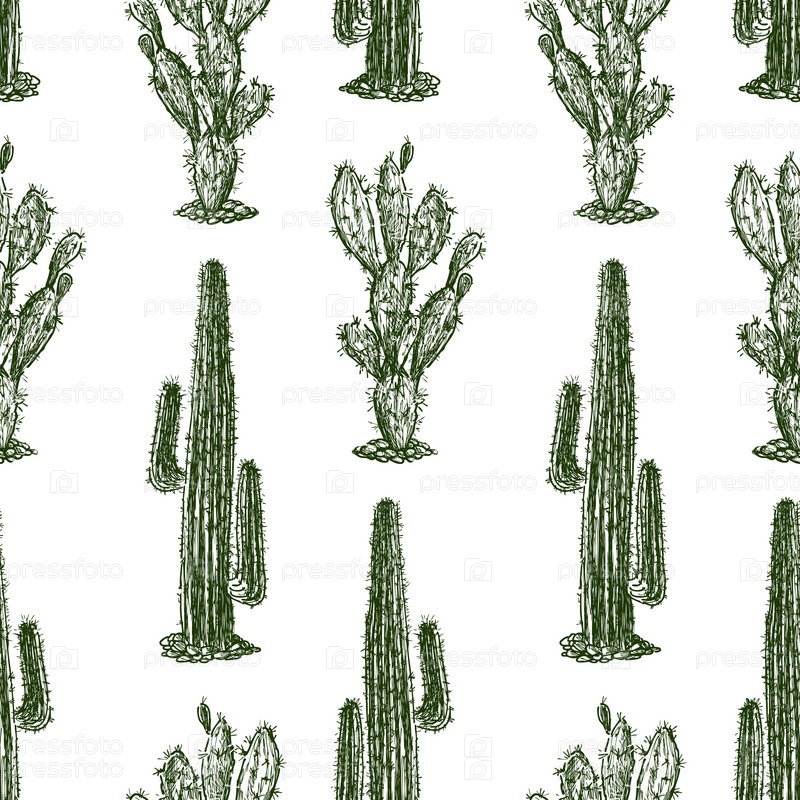 Бесшовный фон из нарисованных кактусов
