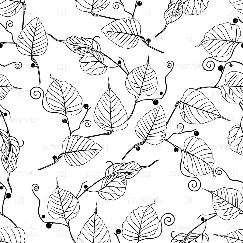 Бесшовный фон из веток с листьями и ягодами