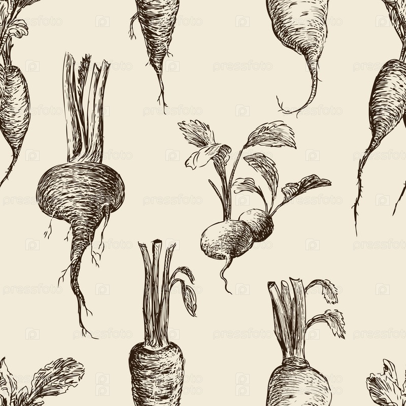 Бесшовный рисунок эскизов различных корнеплодов