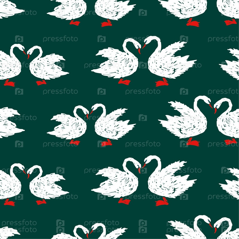 Бесшовный рисунок белых лебедей