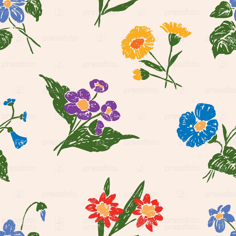 Узор из разных нарисованных цветов