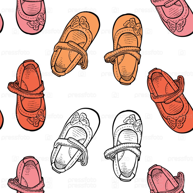 Бесшовный фон из нарисованной обуви для маленьких девочек