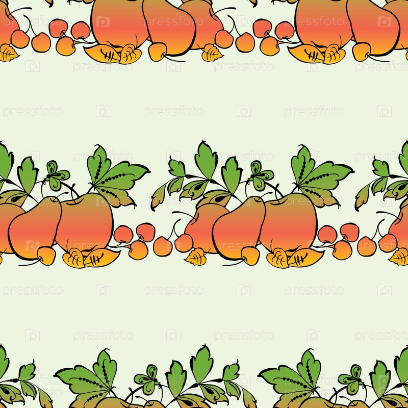 Бесшовный фон из декоративных спелых фруктов и листьев рядами