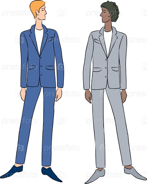 Векторное изображение молодых стройных мужчин в классических костюмах