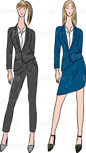 Векторное изображение молодых стройных женщин в деловых костюмах