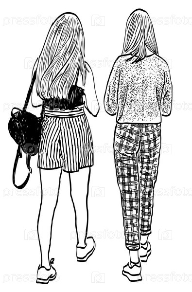 Векторный рисунок девочек-подростков, идущих вместе по улице