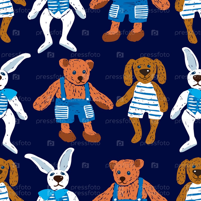 Бесшовный рисунок нарисованных старых мягких игрушек