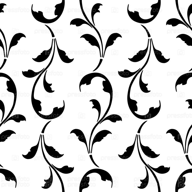 Бесшовный узор силуэтов декоративных гибких веток с листьями