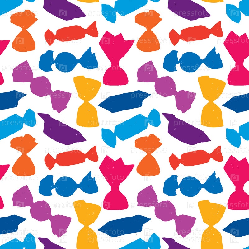 Бесшовный рисунок силуэтов сладостей в красочных обертках