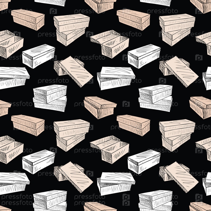 Бесшовный рисунок эскизов различных коробок для обуви
